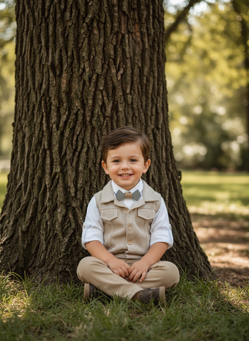 7121 Κωδικός: 7121 Minimal luxury christening outfit with timeless aesthetics. Cotton shirt with soft texture. Vest made of cotton with premium feel. Trousers made of cotton fabric for a comfortable fit. Suspenders that add elegance. Code: 7121