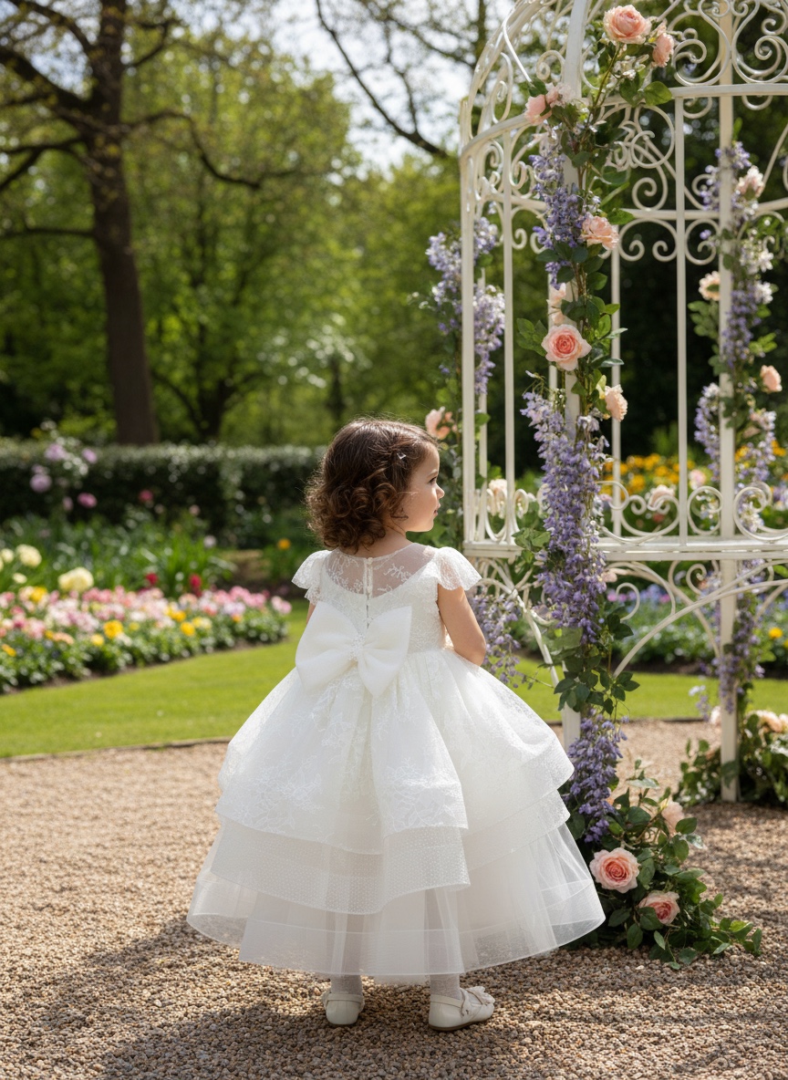 Εντυπωσιακό βαπτιστικό φόρεμα με παραμυθένια αισθητική και έντονο girly χαρακτήρα. Μπούστο από φίνα δαντέλα με κομψά κεντήματα και απαλή υφή. Εντυπωσιακά μανίκια από ανάλαφρο πουα τούλι που χαρίζουν ρομαντικό όγκο. Φούστα από πολυεπίπεδο τούλι με ιδιαίτερη δομή και αέρινη κίνηση. Εσωτερική βαμβακερή φόδρα για άνεση και σωστή εφαρμογή. Διακοσμητικό λουλούδι στη μέση που ολοκληρώνει την premium αισθητική. Χρώμα: Εκρού